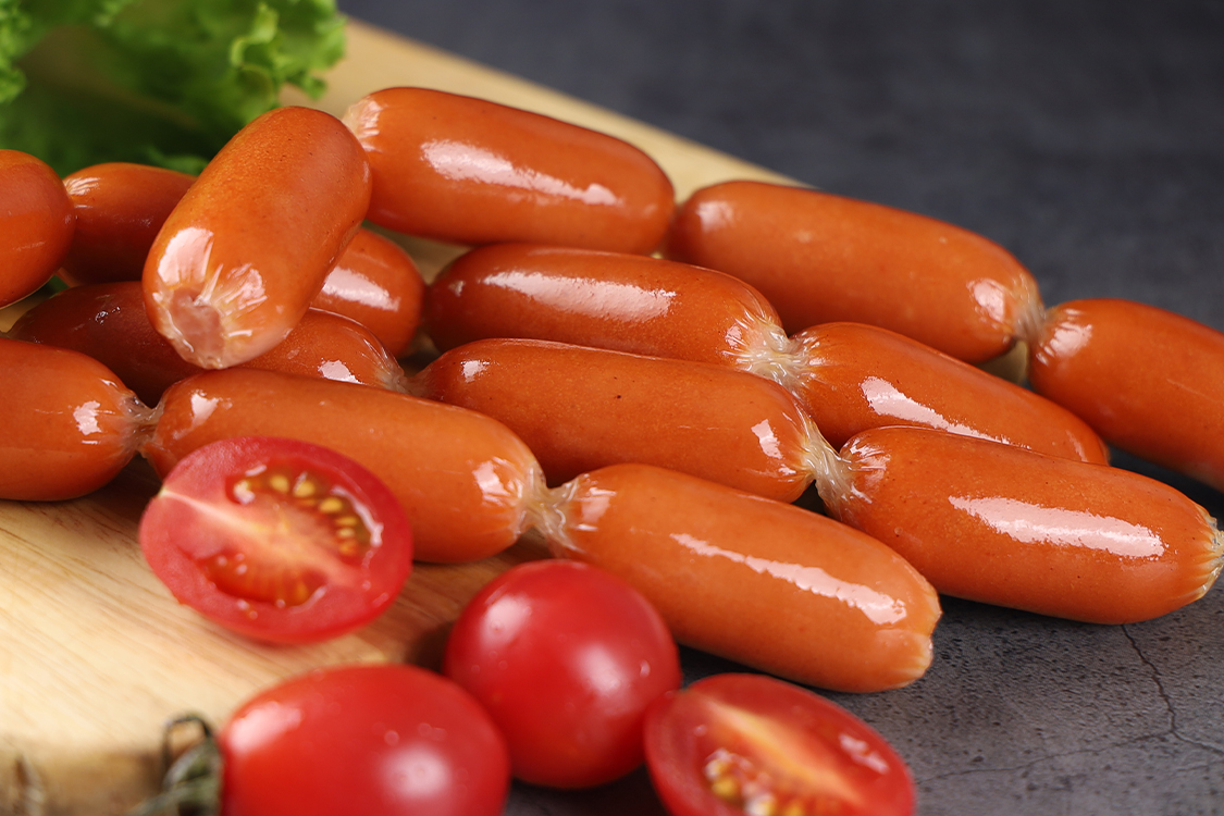 主要配料:豬肉、雞肉、水、食品添加劑、大豆蛋白、食用鹽、香辛料、膠原蛋白腸衣等