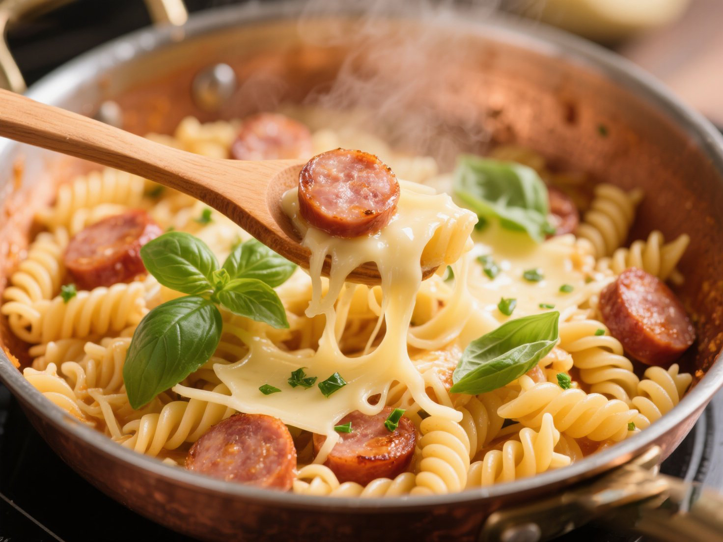 ③面條+3勺面水+香腸+羅勒葉 拌勻燜1分鐘